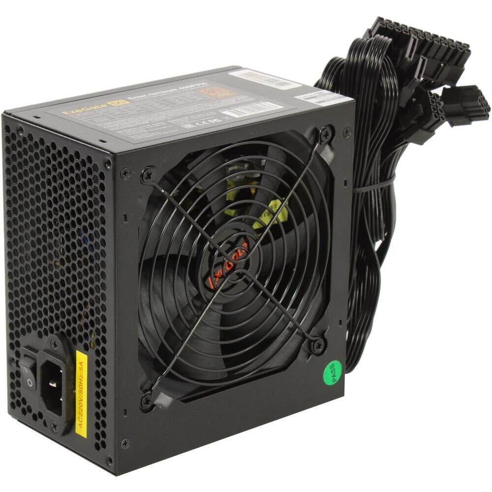 Блок питания 600W ExeGate 80 PLUS® Bronze 600PPH (ATX, APFC, КПД 89% (80 PLUS Bronze), 12cm fan, 24pin, 2x(4+4)pin, 4xPCI-E, 6xSATA, 3xIDE, black, Color Box) EX280578RUS