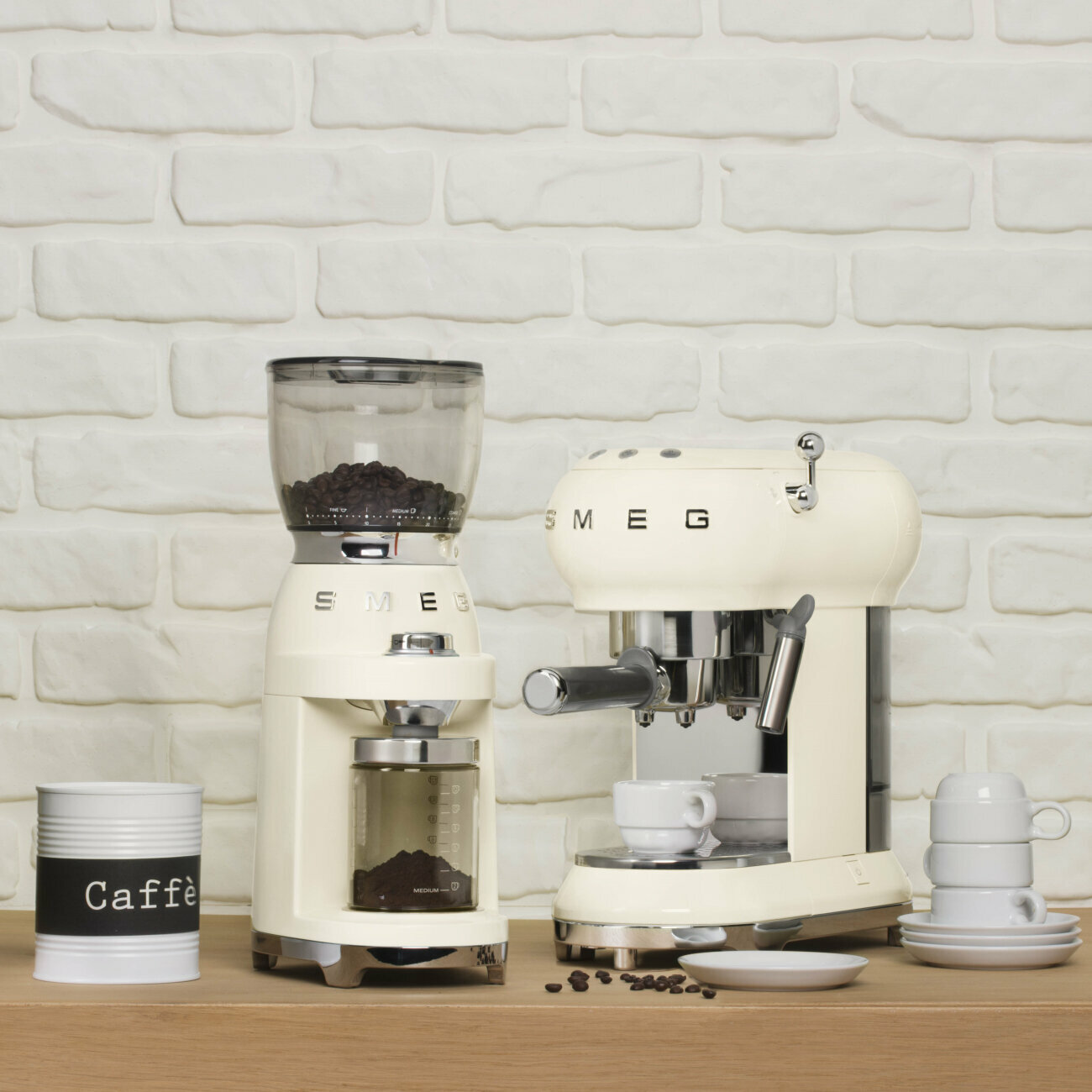 Кофемолка SMEG/ Стиль 50-х, Кофемолка с коническими жерновами, кремовый