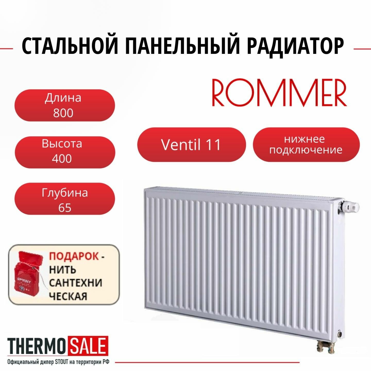 Купить Радиатор стальной панельный ROMMER 400х800 нижнее правое подключение Ventil 11/400/800 Нить сантехническая