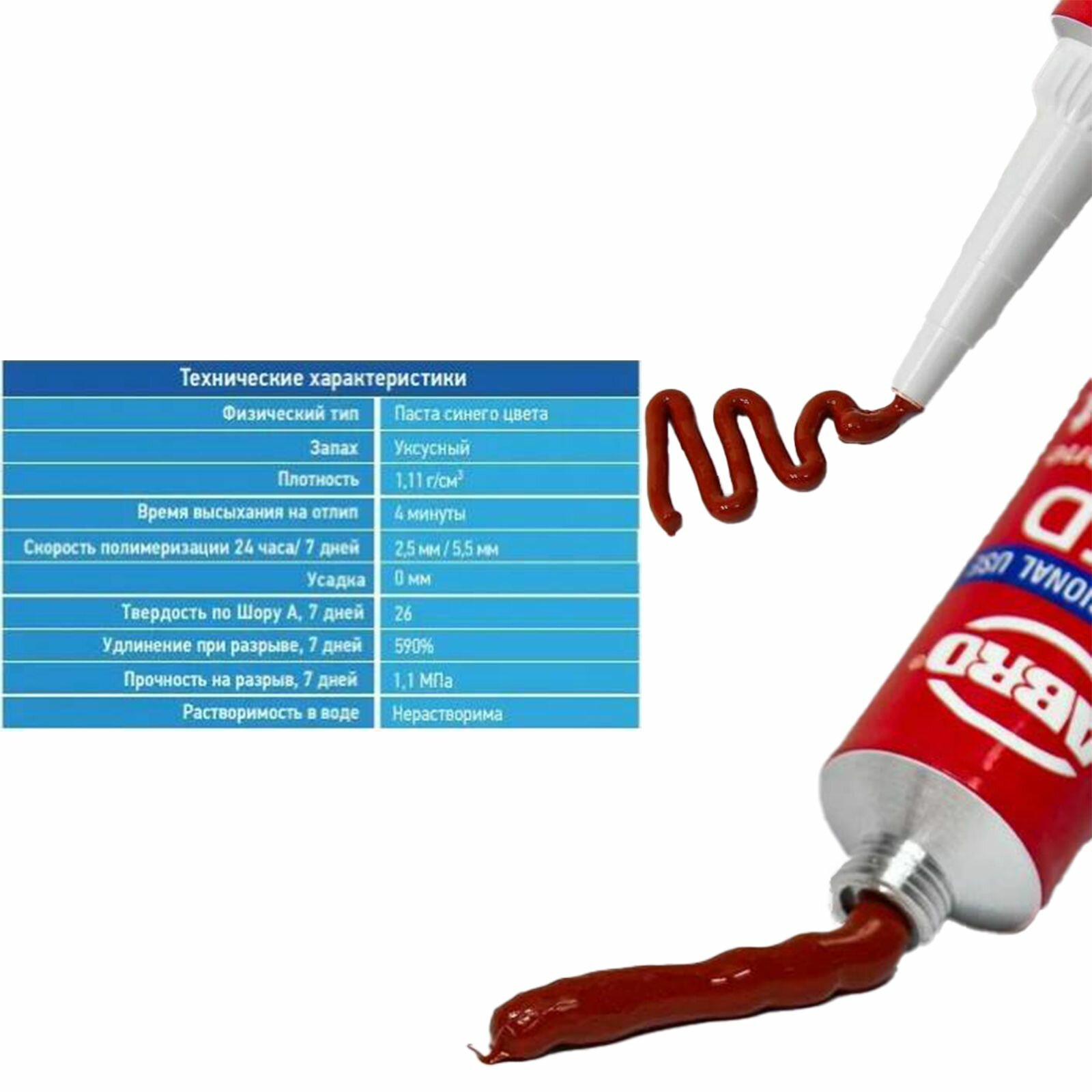 Герметик-прокладка силиконовый красный (32г), ABRO 11ABCH32R (1 шт.)