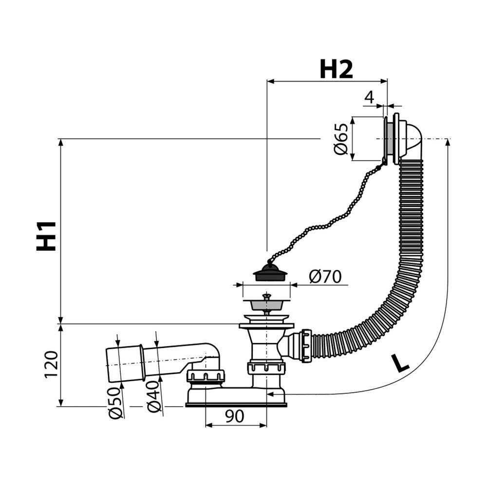 Сифон для ванны, хром AlcaPlast A501