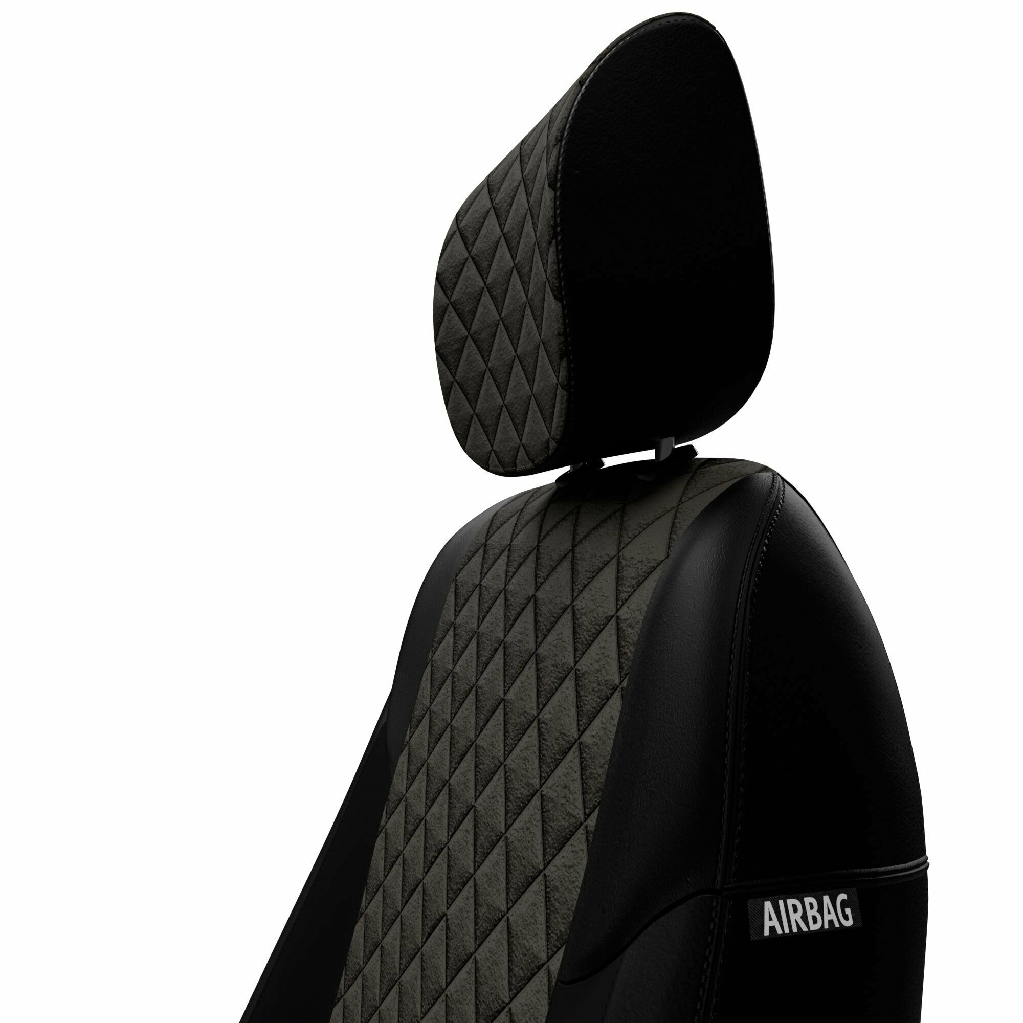Комплект чехлов Автопилот Алькантара ромб Chevrolet Spark III с 10-16г. и с 20г. (рестайл.) / Rav Черный + Серый