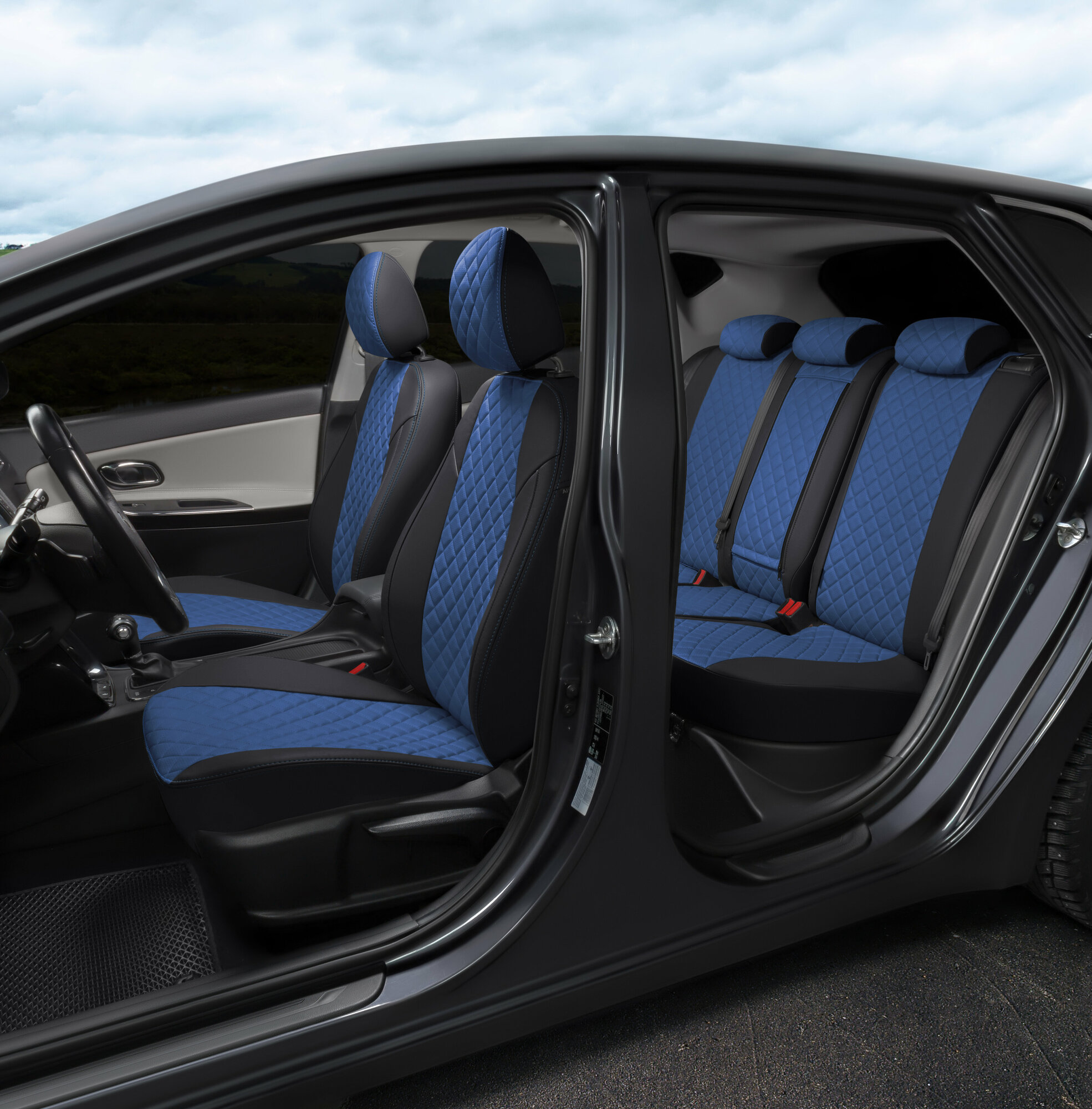 Комплект чехлов на сиденья LADA Vesta / Vesta SW Cross / Vesta NG (Экокожа ромб, Черный + Синий)