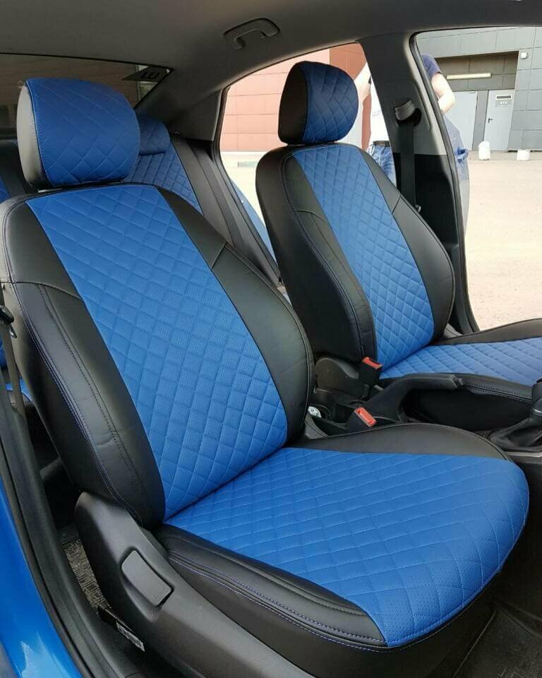 Чехлы на автомобильные сидения LADA Vesta / Vesta SW Cross / Vesta NG (Экокожа ромб, Черный + Синий)