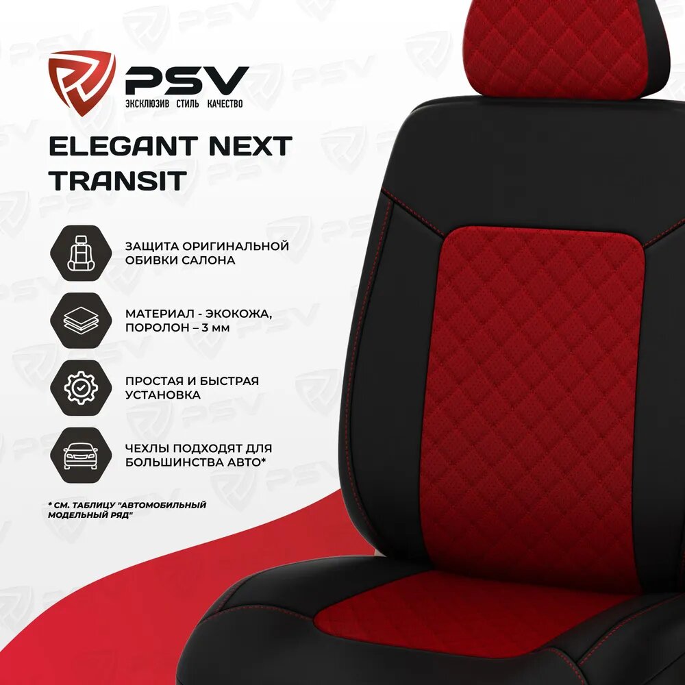 PSV 136391 Чехлы PSV Elegant Next Transit передние экокожа ромб черно-красные