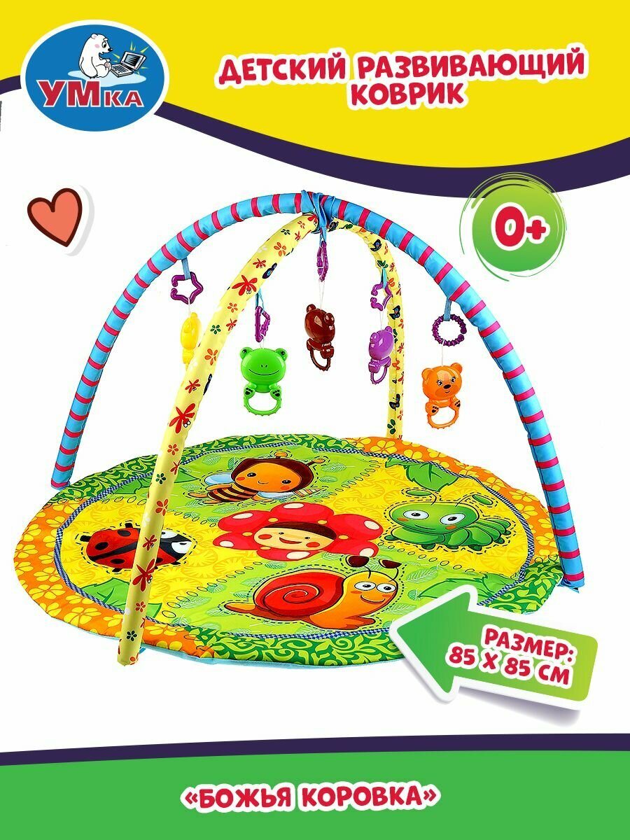 Коврик развивающий божья коровка 2 дуги, 5 съёмных игрушек 85 см х 85 см умка B1682458-R