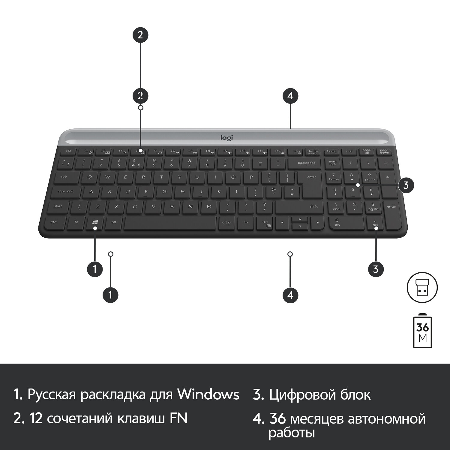 Комплект клавиатура + мышь Logitech MK470 Slim, графитовый, русская оригинальная раскладка.