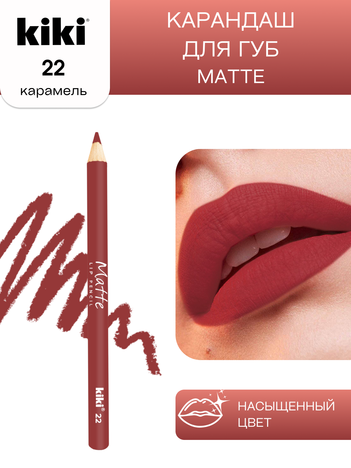 Карандаш для губ kiki MATTE, тон 22 карамель, водостойкий косметический, лайнер, матовый насыщенный цвет, lip pencil