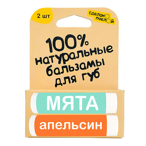 Бальзамы для губ "Мята & Ogange", с пчелиным воском Сделано пчелой 2 шт по 10 мл