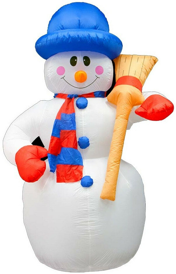 Купить 3D фигура надувная "Снеговик с метлой", размер 120 см, внутренняя подсветка 3 Led, компрессор с адап .