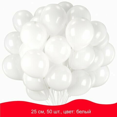 Воздушные шары золотая сказка , 10" (25 см), комплект 50 штук, белые, пакет, 105000