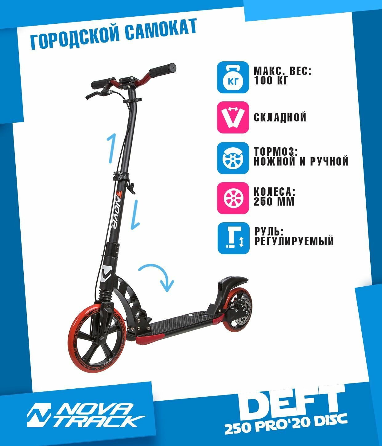 Самокат Novatrack Deft Pro 250DBDS.DEFT.BBK20