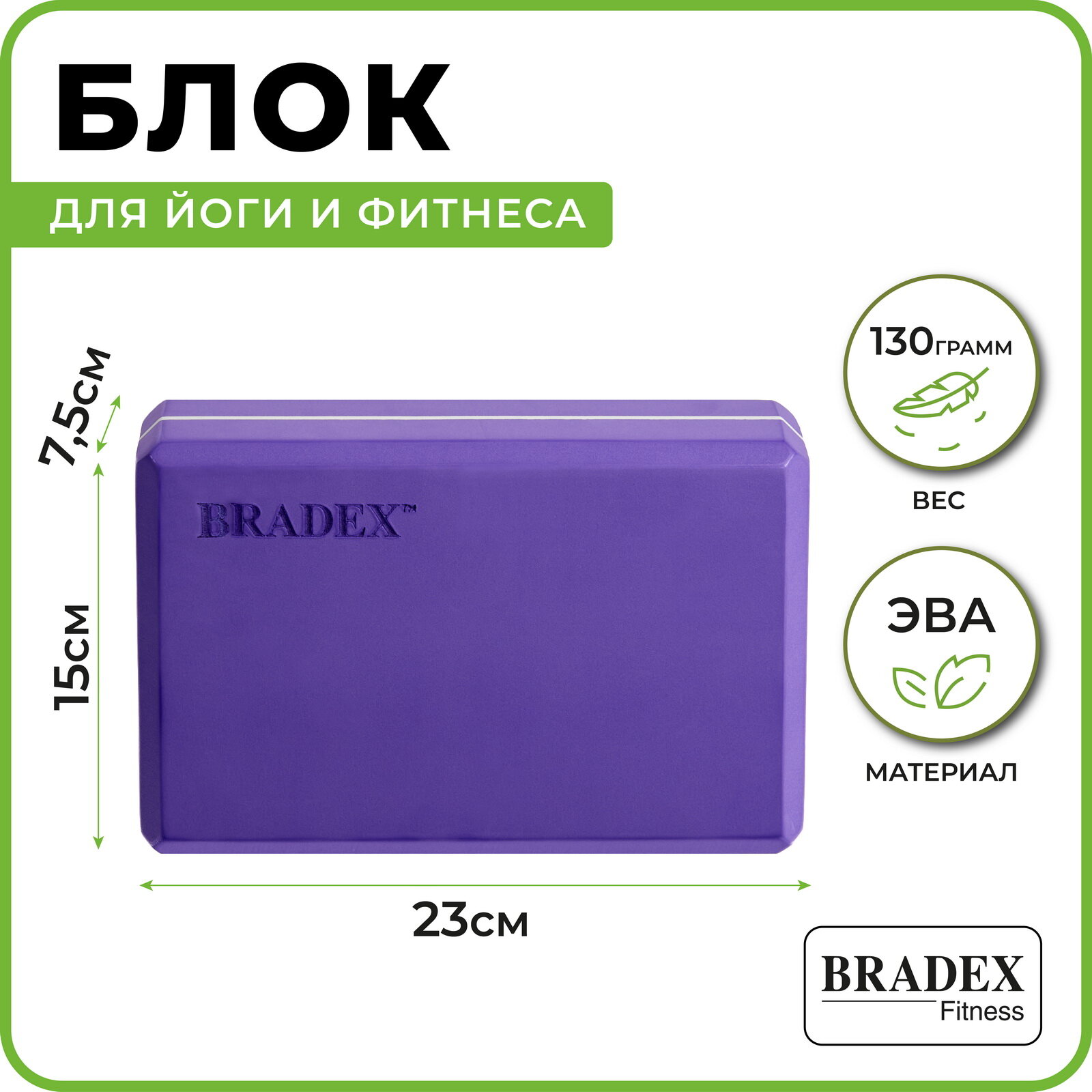 Блок для йоги BRADEX, кирпич для фитнеса и гимнастики, опорный кубик для растяжки, 23х15х7,5 см, фиолетовый