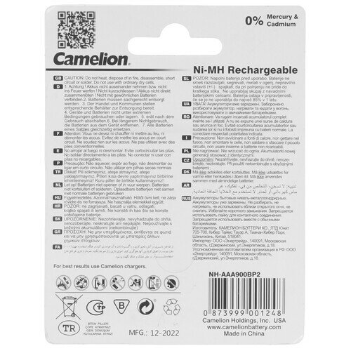 Camelion Aaa- 900mAh Ni-Mh BL-2 (nh-aaa900bp2, аккумулятор,1.2В) (2 шт. в уп-ке)