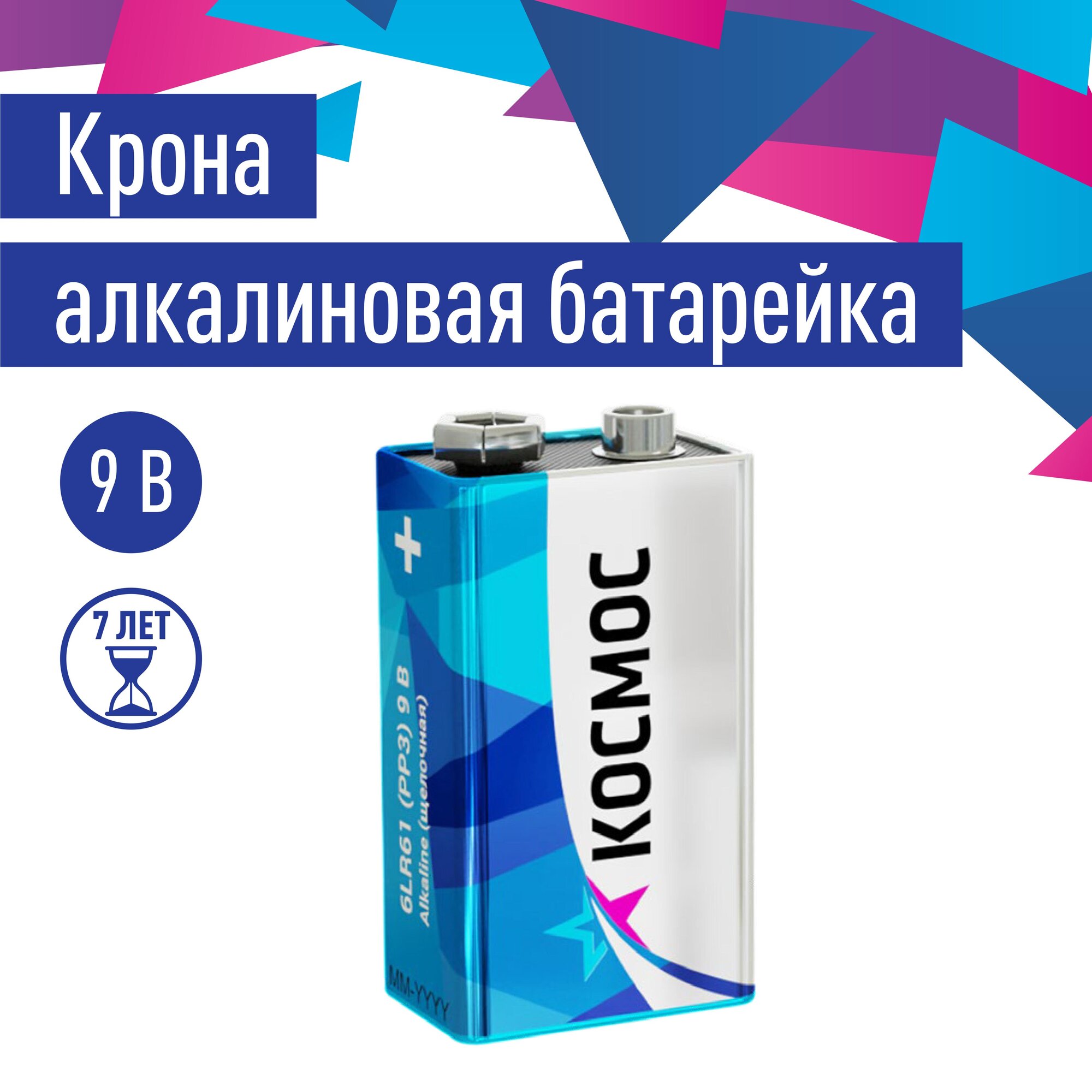 Батарейка щелочная крона Космос 6LR61 1шт.