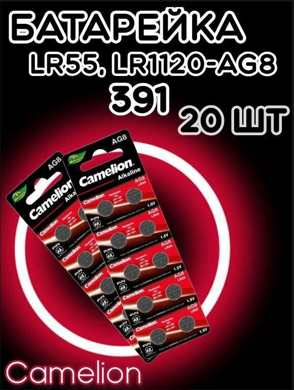 Купить Батарейка дисковая Camelion AG8/Элемент питания Камелион 391/Таблетка для часов алкалиновая Хамелеон LR55(20 шт)