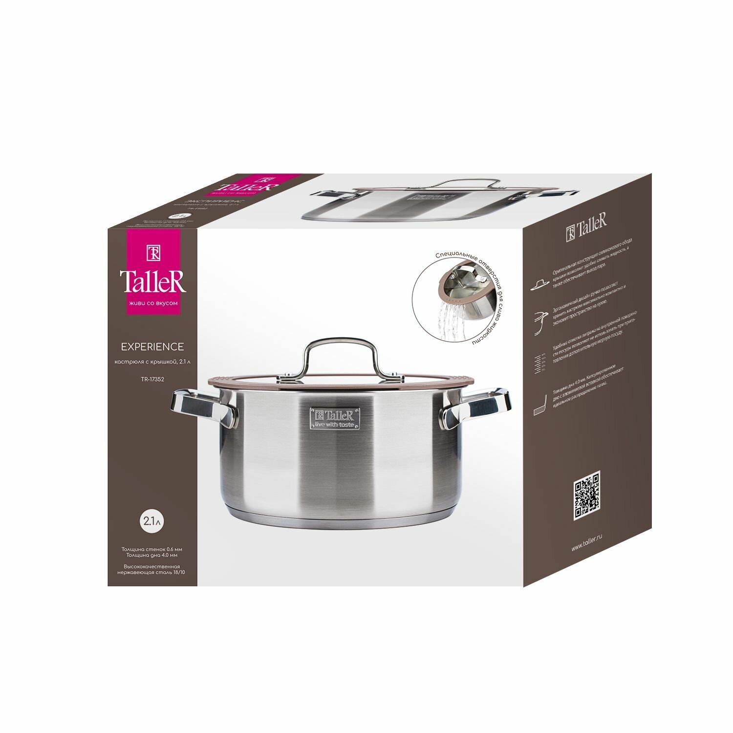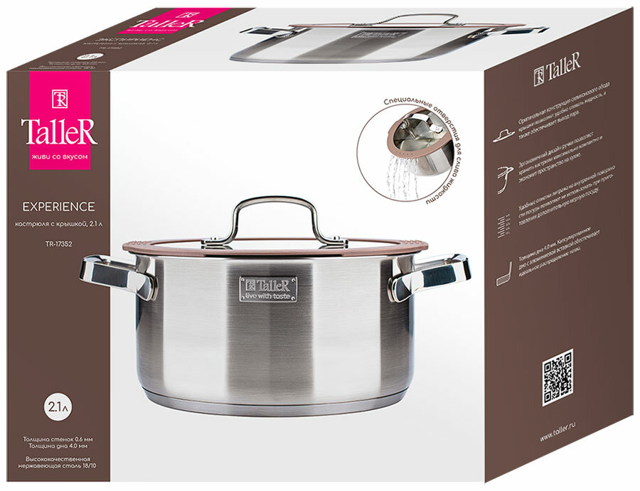 Ниже Вы можете прочитать отзывы на Кастрюля Taller Experience TR-17352 2,1 л, ознакомится с подробными характеристиками, посмотреть интересные обзоры и фотографии на Кастрюля Taller Experience TR-17352 2,1 л.
