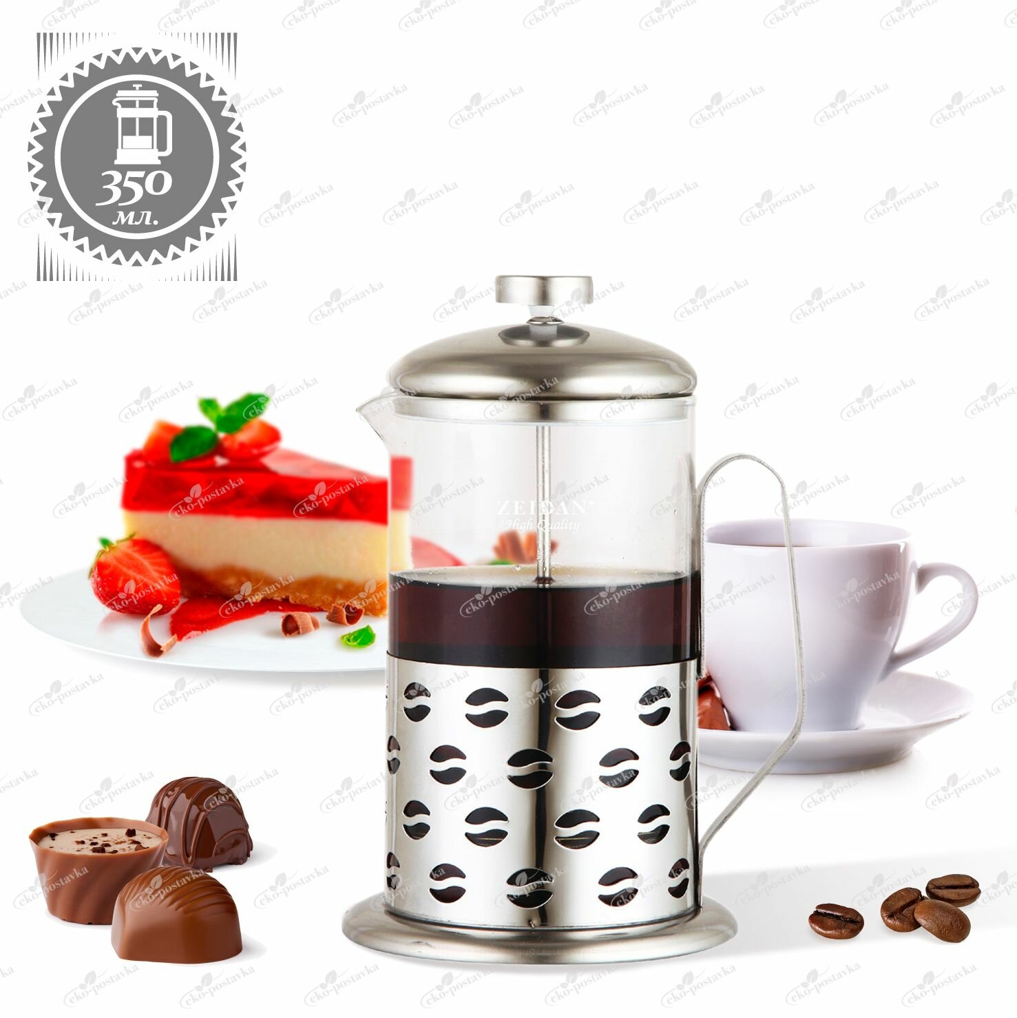 Стеклянный френч-пресс ZEIDAN-4074 для заваривания чая, 350 мл