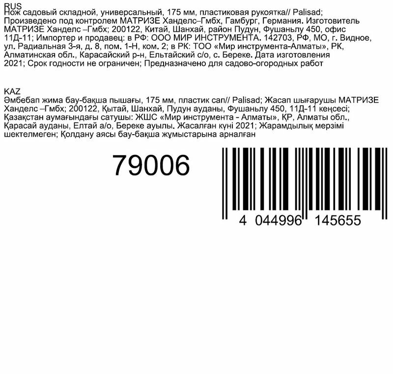 Нож садовый складной, универс. 175мм, пласт. рукоятка (арт.79006) PALISAD интересное: