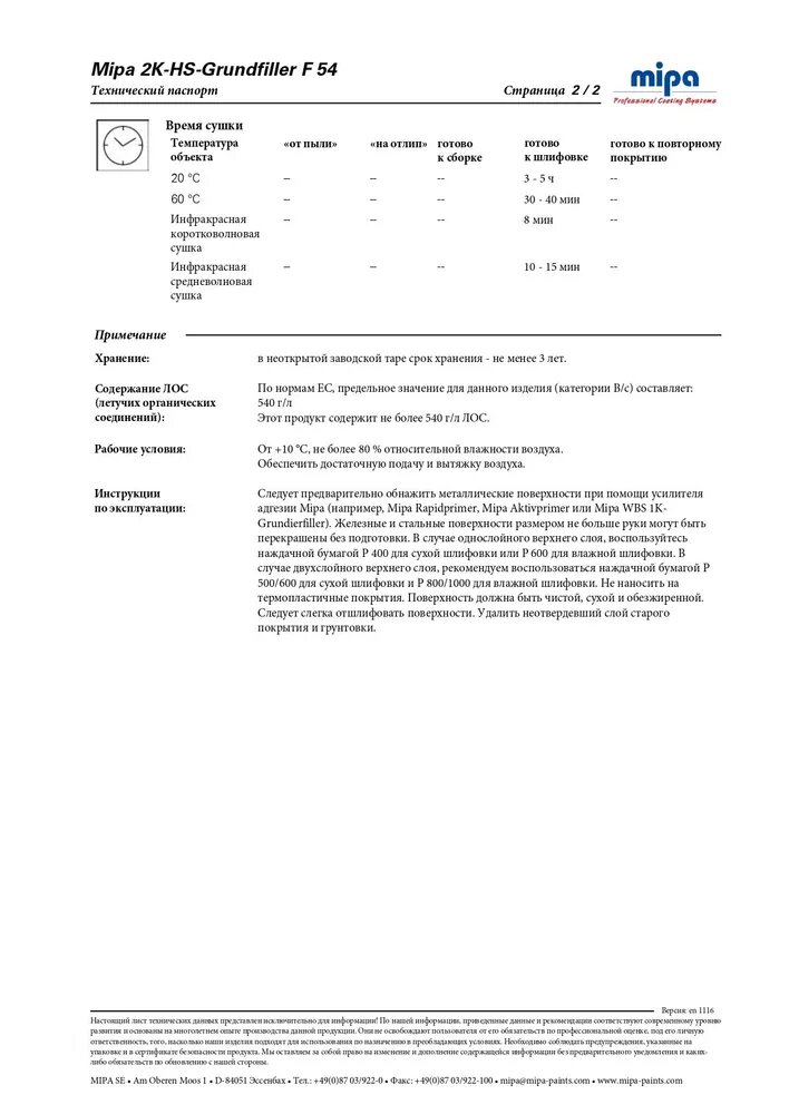 Ниже Вы можете прочитать отзывы на Грунт выравниватель акриловый Mipa F54 2K HS белый 1 л. с отвердителем 0,25 л., ознакомится с подробными характеристиками, посмотреть интересные обзоры и фотографии на Грунт выравниватель акриловый Mipa F54 2K HS белый 1 л. с отвердителем 0,25 л..