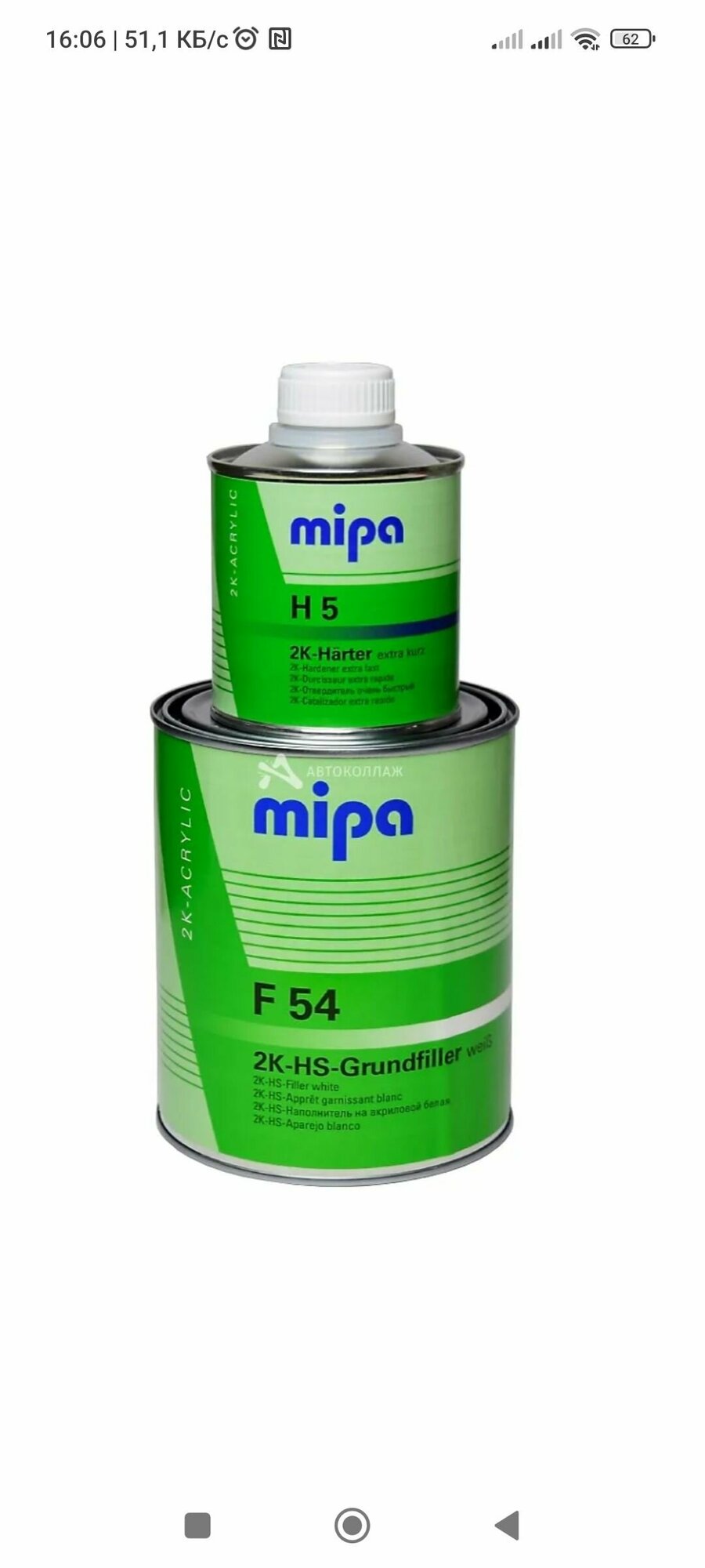 Грунт выравниватель акриловый Mipa F54 2K HS белый 1 л. с отвердителем 0,25 л. интересное:
