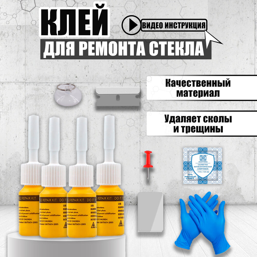 Рекмкомплект для ремонта стекла автомобиля интересное:
