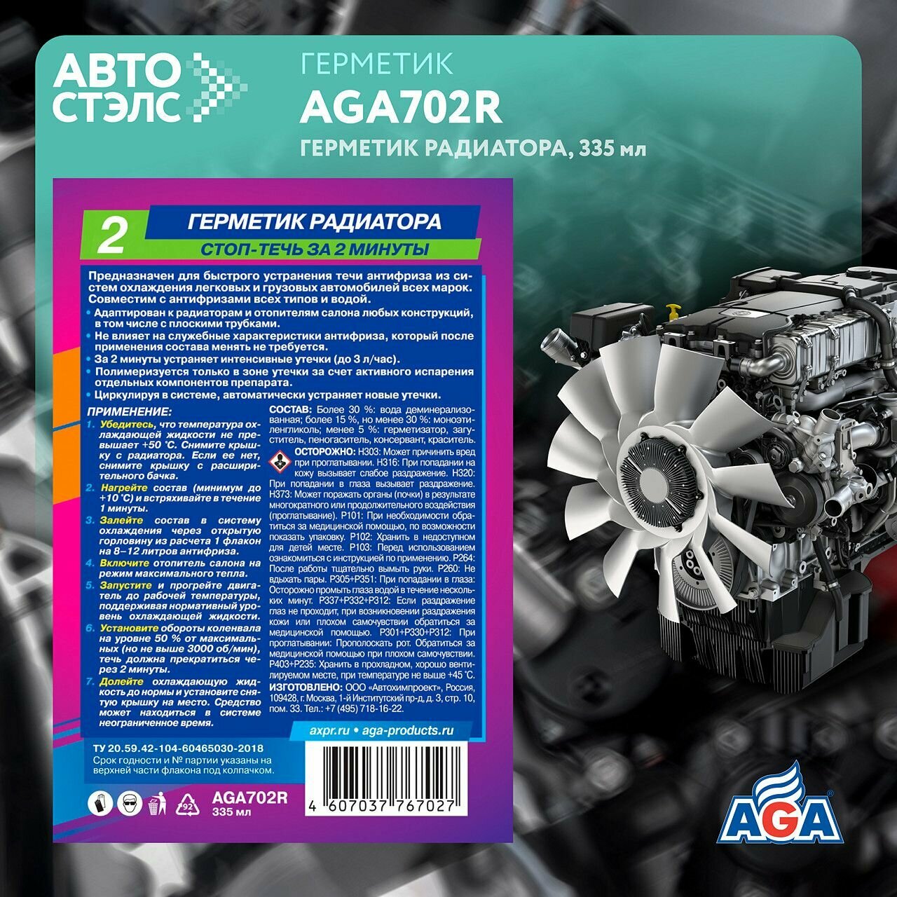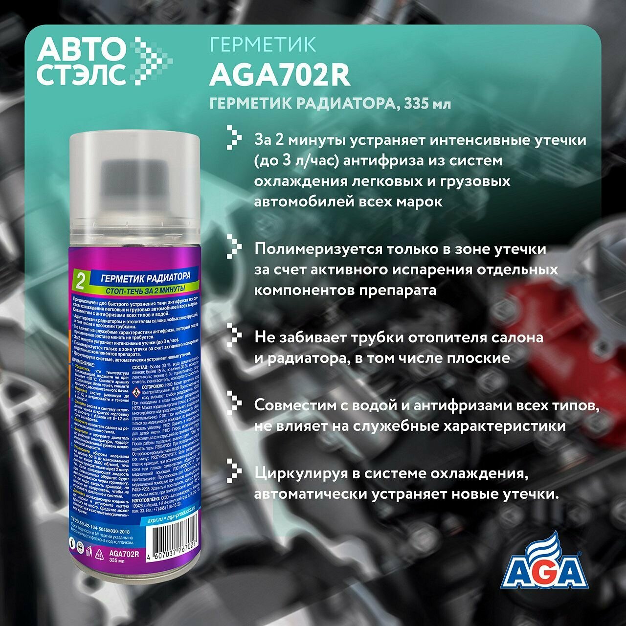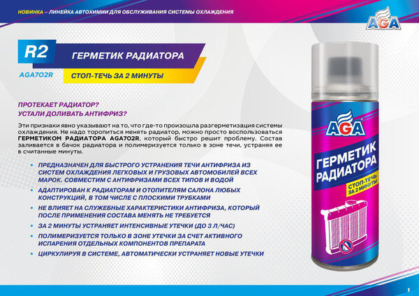 | Подробная комплектация | Герметик Радиатора AGA702R/335 мл |