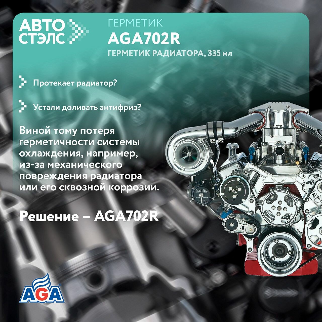 Герметик системы охлаждения AGA 335 мл интересное: