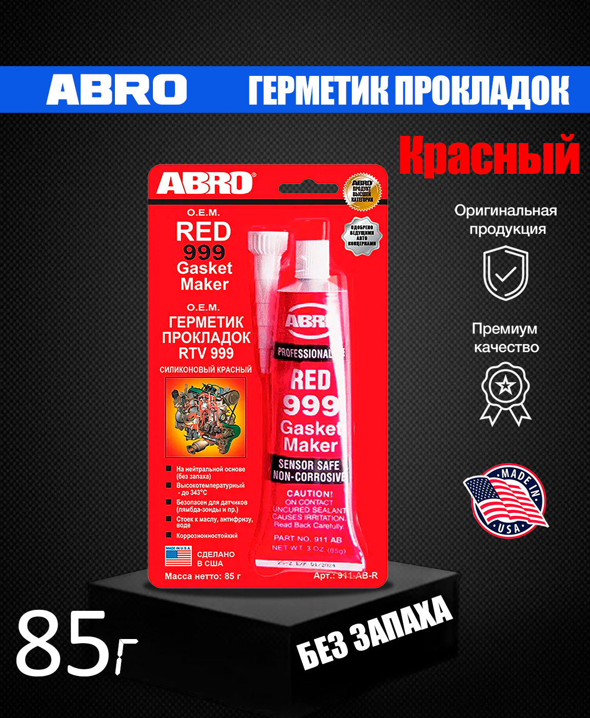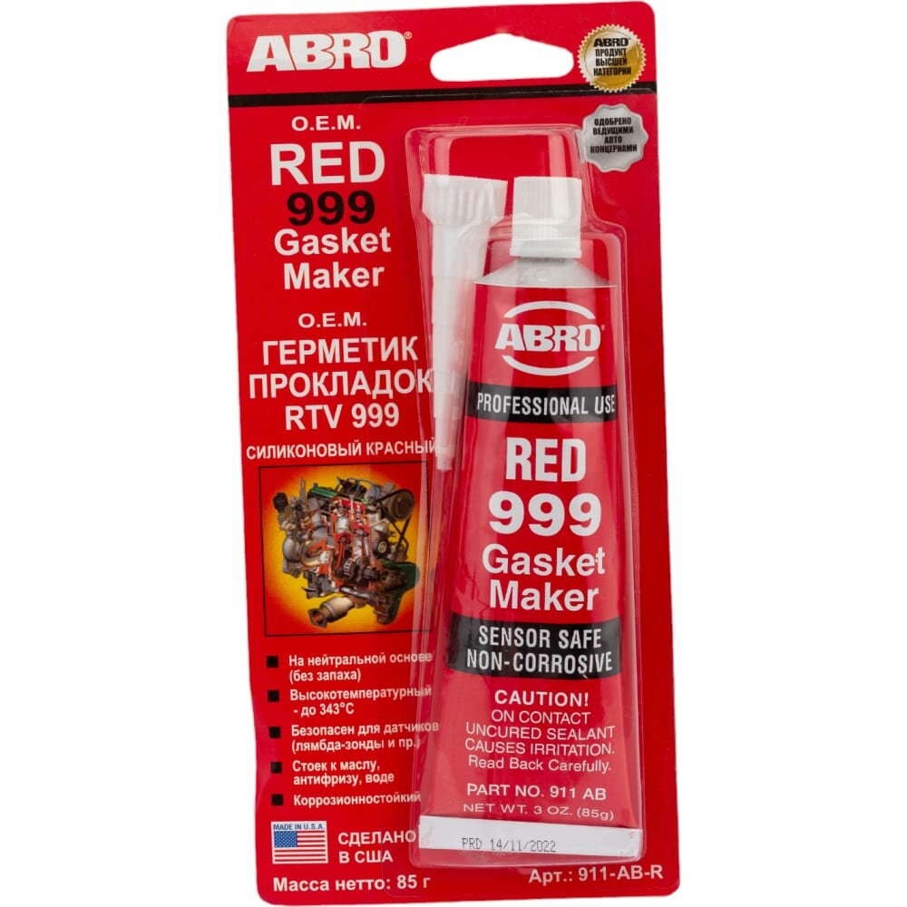 Герметик - прокладка 999 силиконовый OEM (красный) 85 г ABRO, 911ABR ABRO 911-AB-R