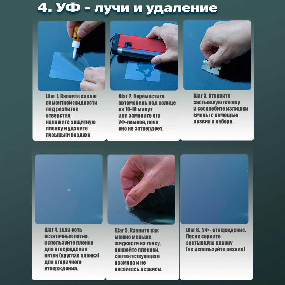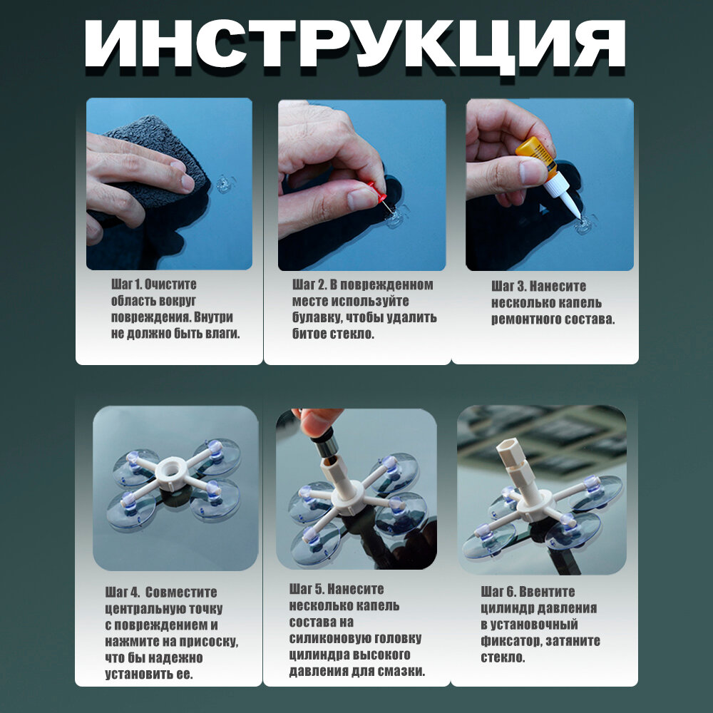 Набор для устранения сколов и трещин на лобовом стекле авто