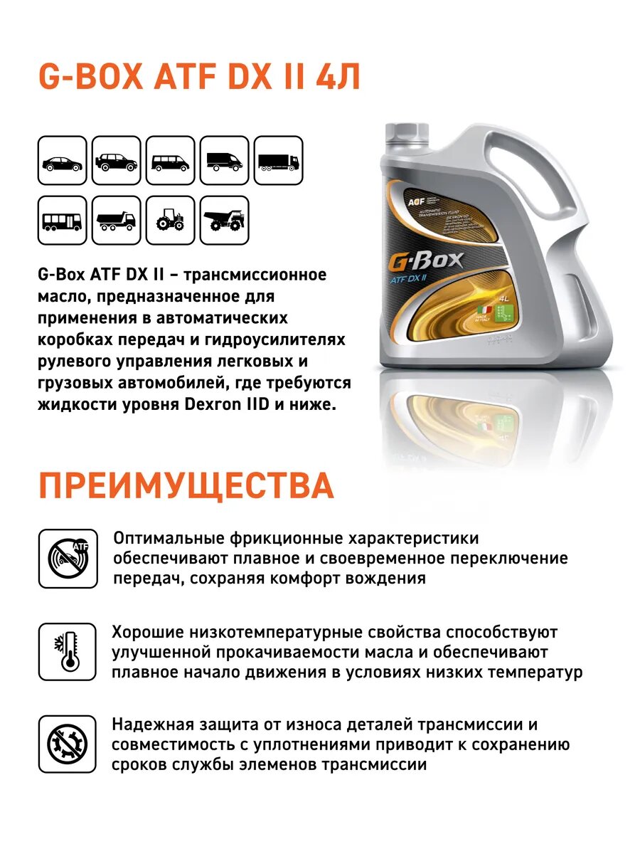 СохранитьМасло трансмиссионное G-Box ATF DX II, 20л интересное: