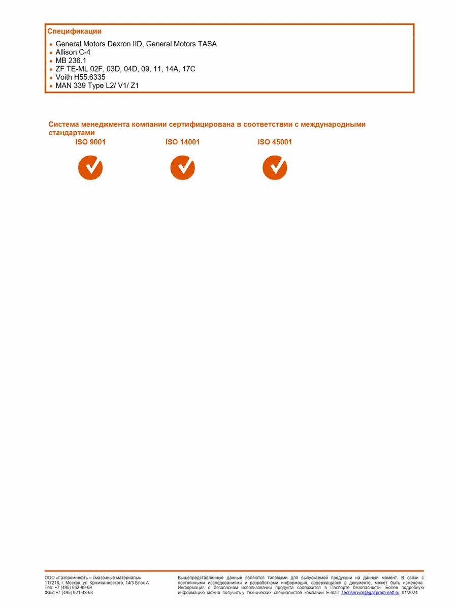 | Стандарт ATF | Dexron IID |