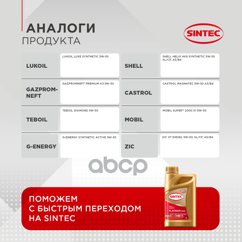 Моторное масло SINTEC PLATINUM 7000 5W-30 A3/B4, 1L интересное:
