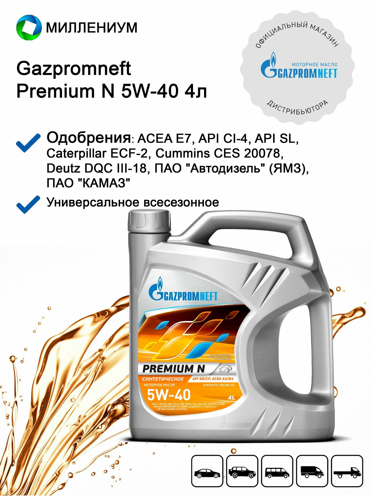 Масло моторное Gazpromneft Premium N 5W40 синтетическое 4 л 2389900144 GAZPROMNEFT / арт. 2389900144 - (1 шт)