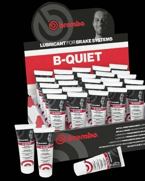 | Способ применения | Перед нанесением продукта очистите точки контакта между суппортом и колодкой. Наносите продукт на точки контакта между суппортом и колодкой. Равномерно распределите смазку на поверхности. Смазку Brembo B-QUIET можно удалить с помощью ткани и / или моющего средства для дисковых тормозов. |