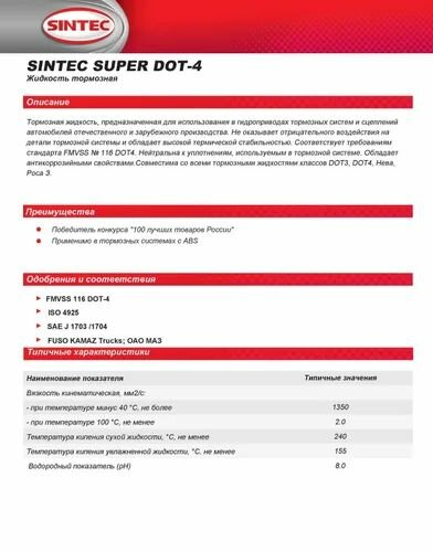 Тормозная жидкость Sintec 990244 интересное: