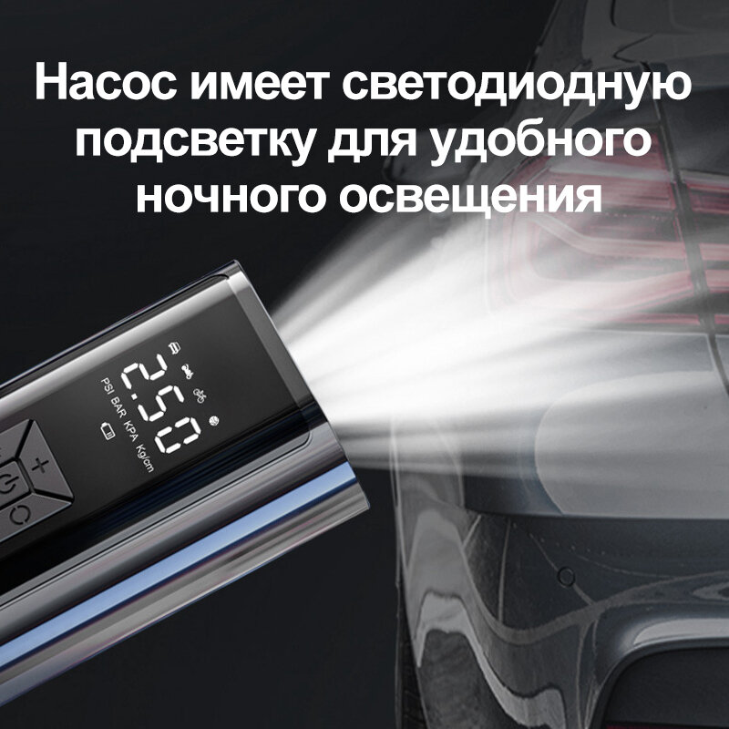 Насос Автомобильный с LED экраном, Автомобильные компрессоры, Беспроводной Компрессор Автомобильный Двухпоршневой, встроенным АКБ и зарядкой от USB (Черный)