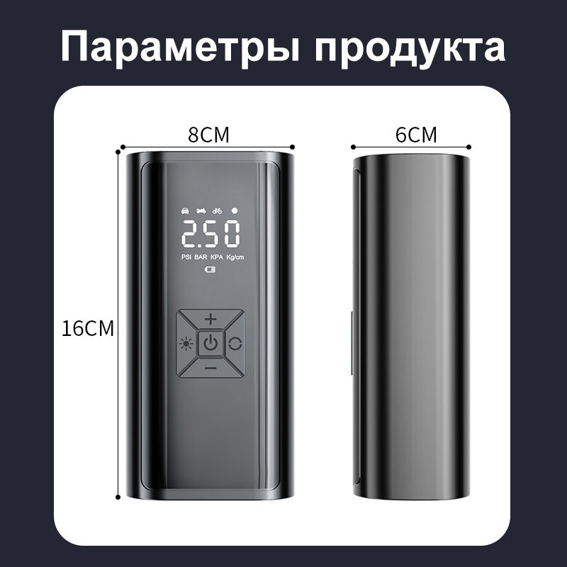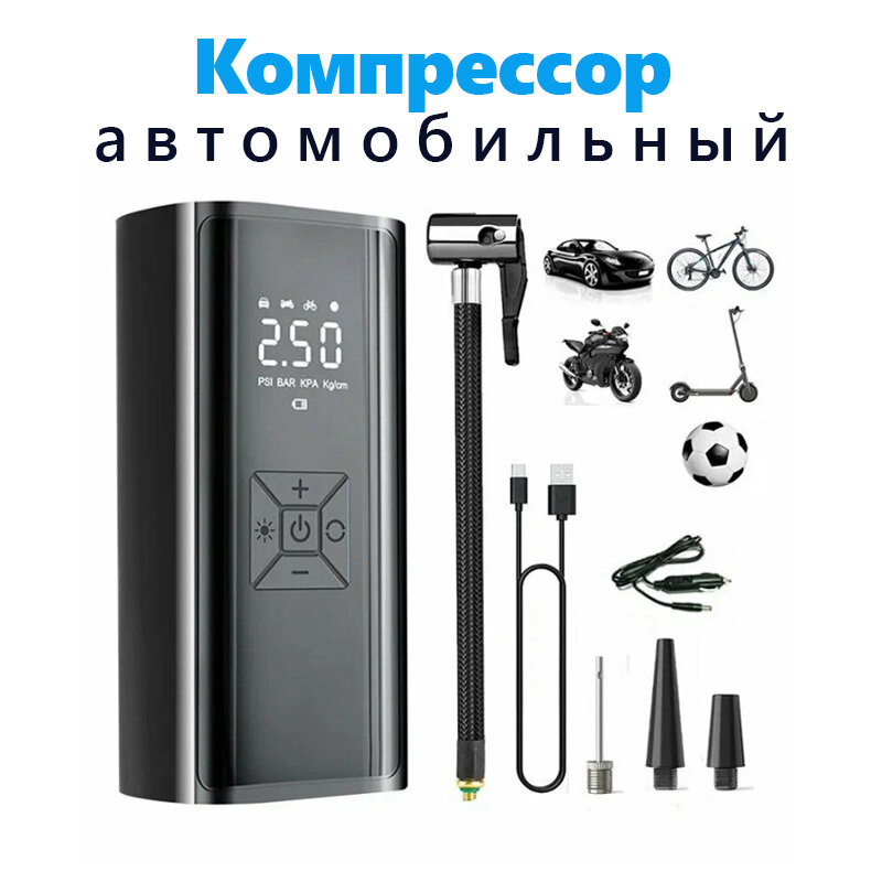 СохранитьНасос автомобильный, Автомобильные компрессоры, Компрессор автомобильный, Насос автомобильный аккумуляторный, Автокомпрессор, электронасос с LED экраном, встроенным АКБ и зарядкой от USB, Компактный, Черный интересное: