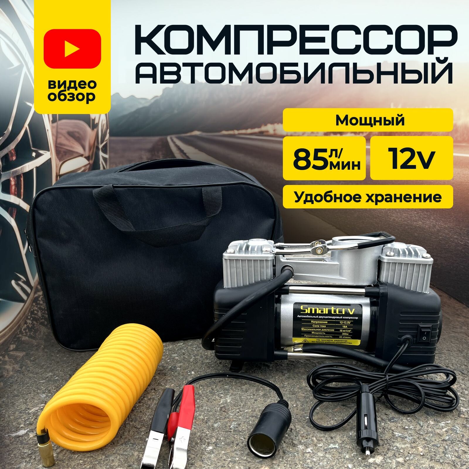 Автомобильный компрессор Smartcrv, мощность 300Вт, двухпоршневой