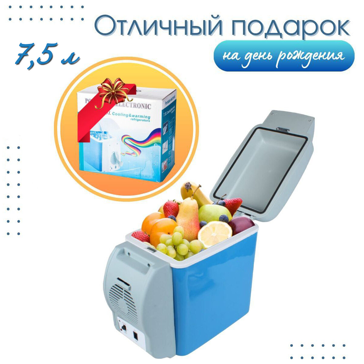 Туристический мини холодильник автомобильный 7.5л 12В интересное:
