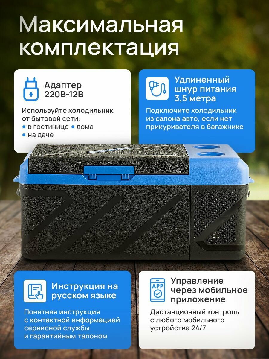 | Подробная комплектация | Компрессорный автохолодильник, шнур питания, адаптер 220В-12В, инструкция по эксплуатации. |