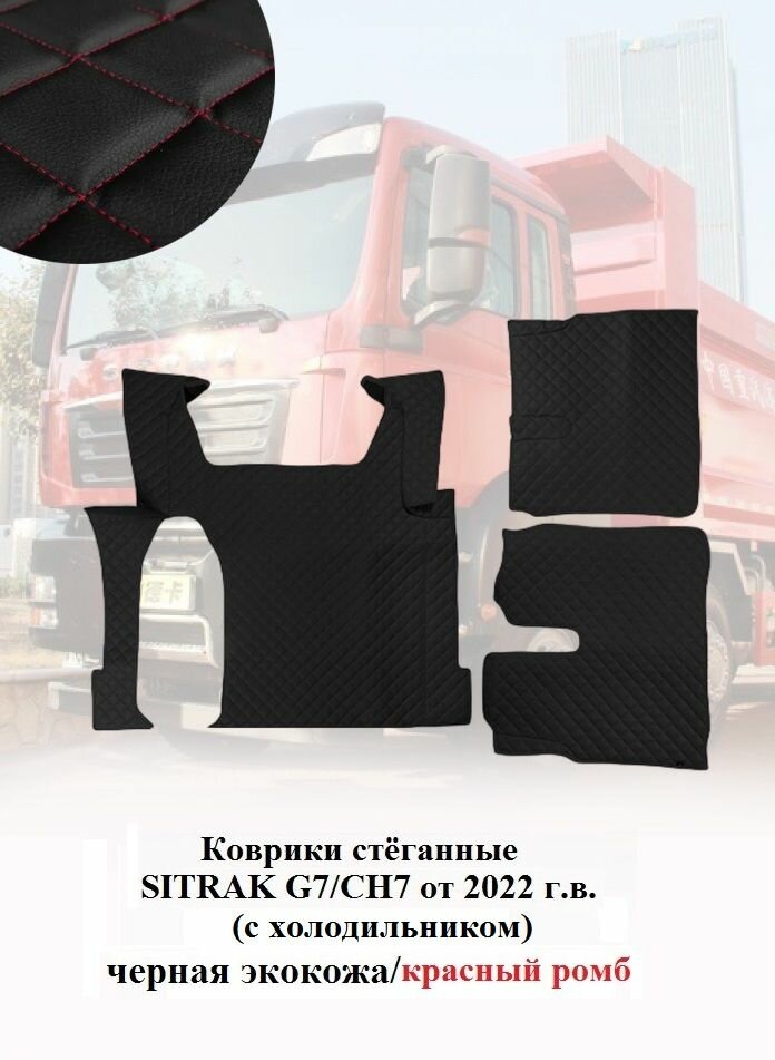 Купить Коврики стёганные SITRAK G7/СH7 2022-н.в Механика/чёрная экокожа с красным ромбом