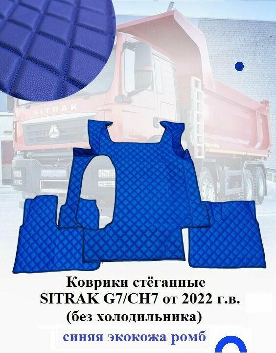 Купить Коврики стёганные SITRAK G7/СH7 2022-н.в Механика без холодильника из синей экокожи с синими ромбом