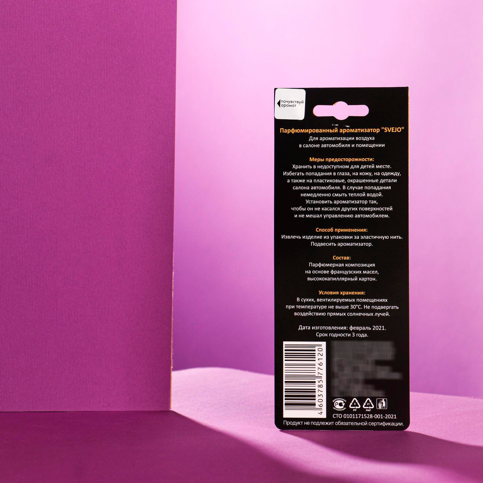 Ароматизатор для автомобиля Svejo, аромат: N5, картон интересное: