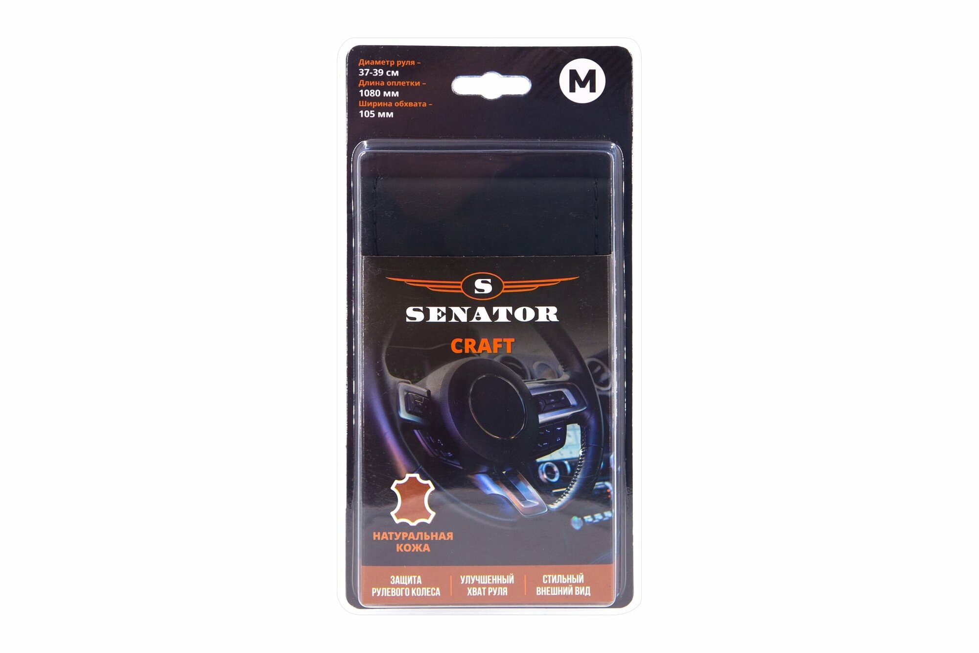 SENATOR Оплетка на руль Craft на шнуровке (нить, игла), натуральная кожа без перфорации, размер М (D=38см), черный, нить черная OPLS2801 интересное: