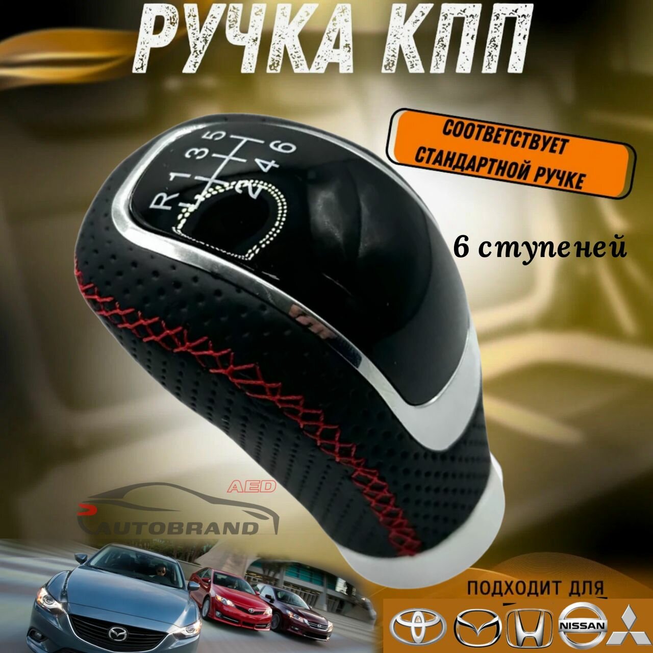Универсальная ручка переключения КПП, МКПП черная с красной строчкой на иномарки 6 ступеней передач интересное: