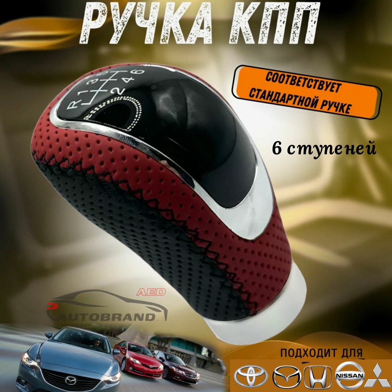 Универсальная ручка переключения КПП, МКПП черная с красной вставкой на иномарки 6 ступеней передач интересное: