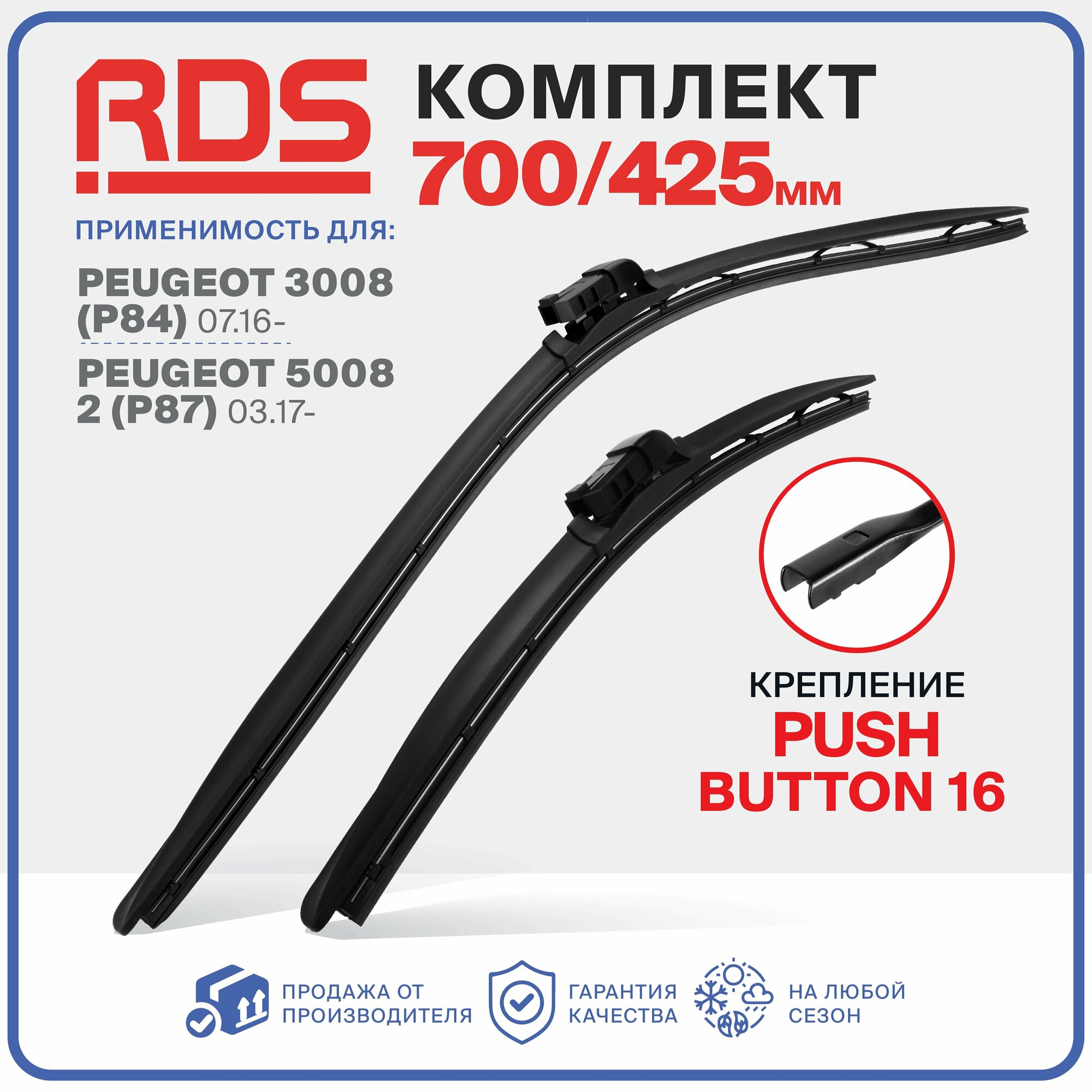 Купить 700 425 мм. Push Button 16 мм. Комплект бескаркасных щеток стеклоочистителя RD5 дворники на Peugeot 3008 / 5008 , Пежо 3008 / 5008