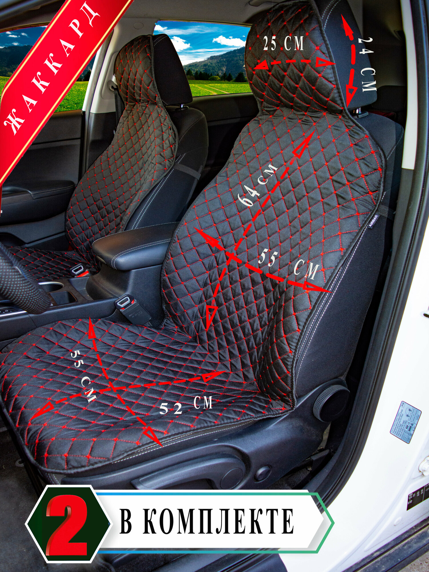 Купить MELKUMYANPRIDE/ Накидки чехлы на переднее сиденье автомобиля 2шт. Красная/строчка
