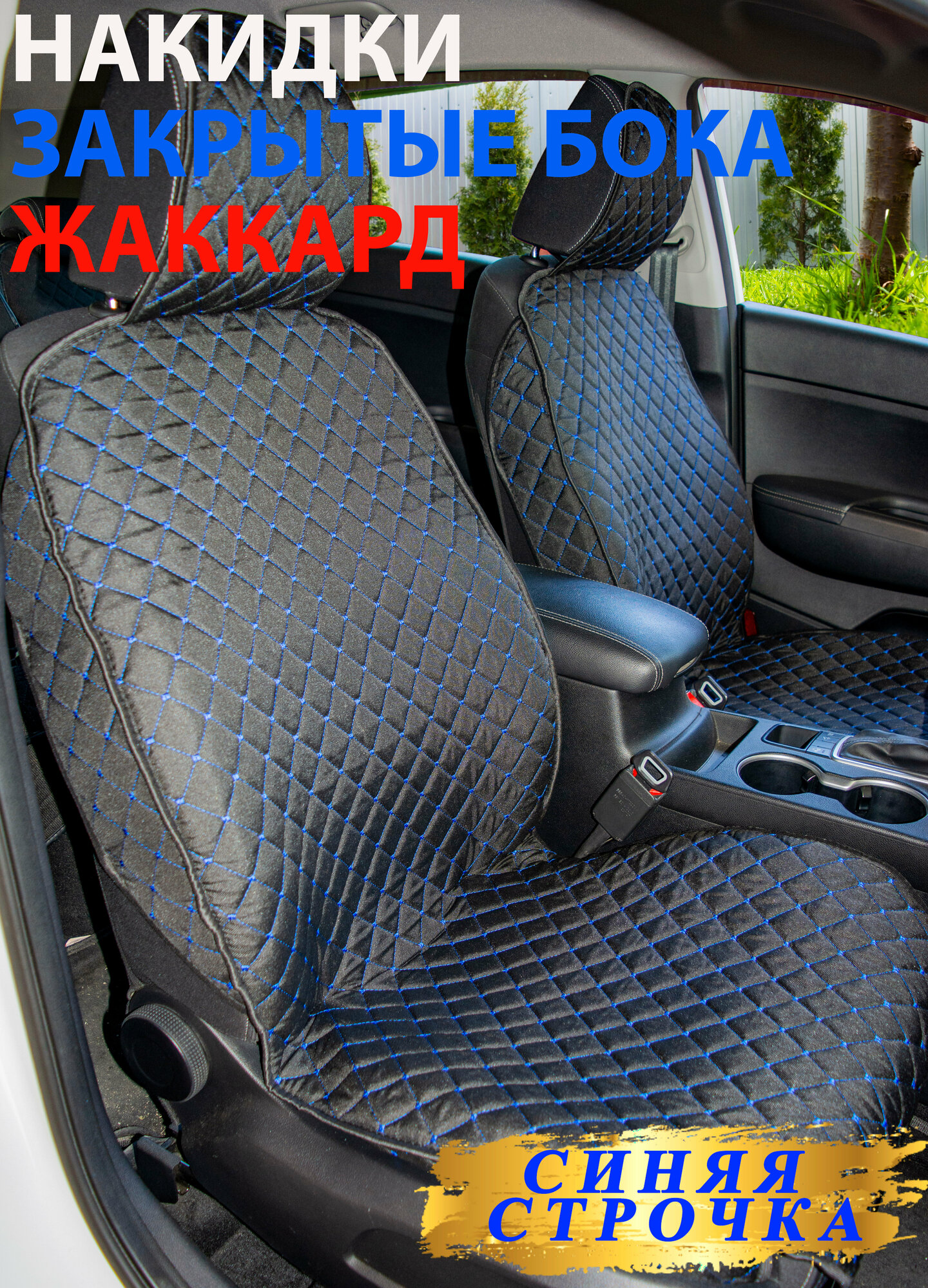 MELKUMYANPRIDE/ Накидки чехлы на пердее сиденье автомобиля 2шт. Синяя/ строчка